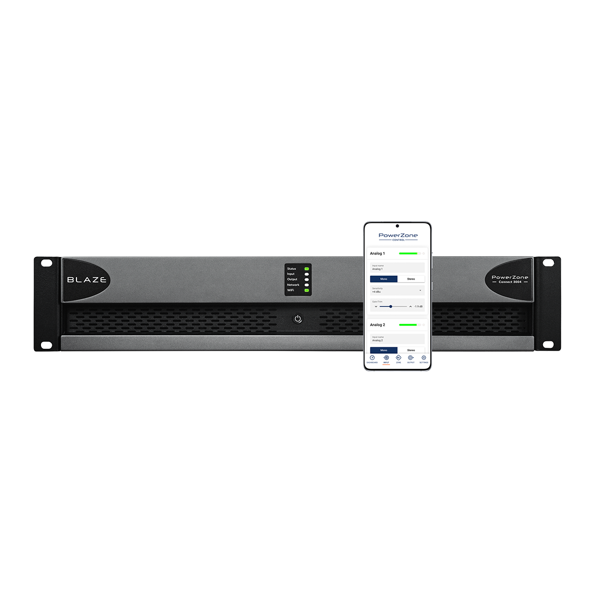 BLAZE Audio PowerZone™ Connect 3004, 2U-serien er en ultra-pålidelige, full-matrix DSP-aktiverede Class-D-forstærkere, der leverer enestående system muligheder.