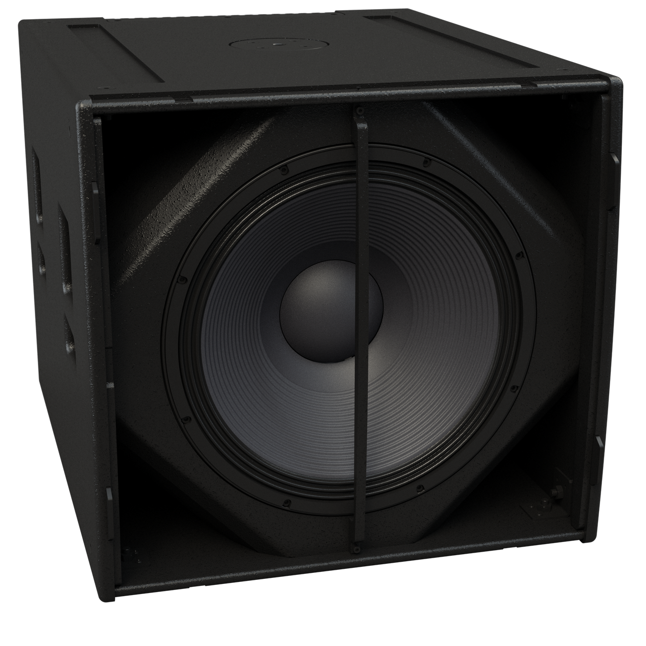 Foran kabinettet er outputtet fra de to drivere additivt, hvilket giver en ekstra output på 2 dB sammenlignet med en konventionel 1 x 18″ subwoofer.
