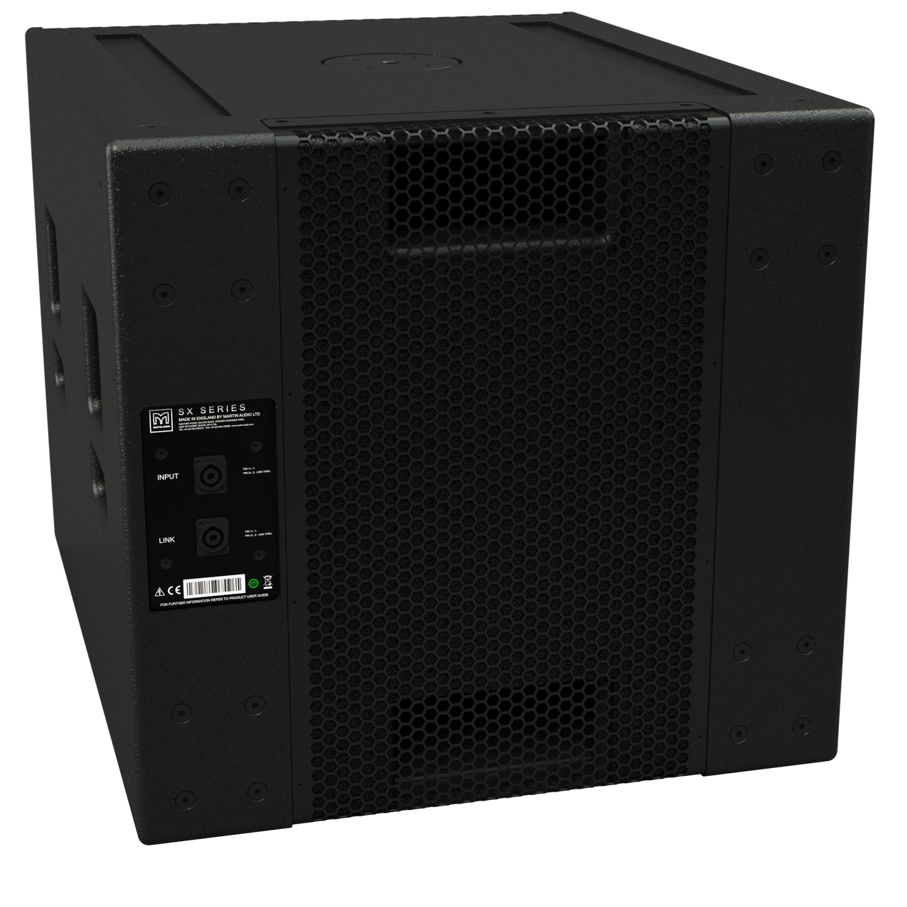 SXC118 er en ideel partner til WPM line arrays eller Martin Audio point source-systemer, hvor lavfrekvent mønsterkontrol er påkrævet. Den kan bruges enkeltvis, stablet eller flyvende individuelt ved hjælp af gevindskårne flyvende indsatser.