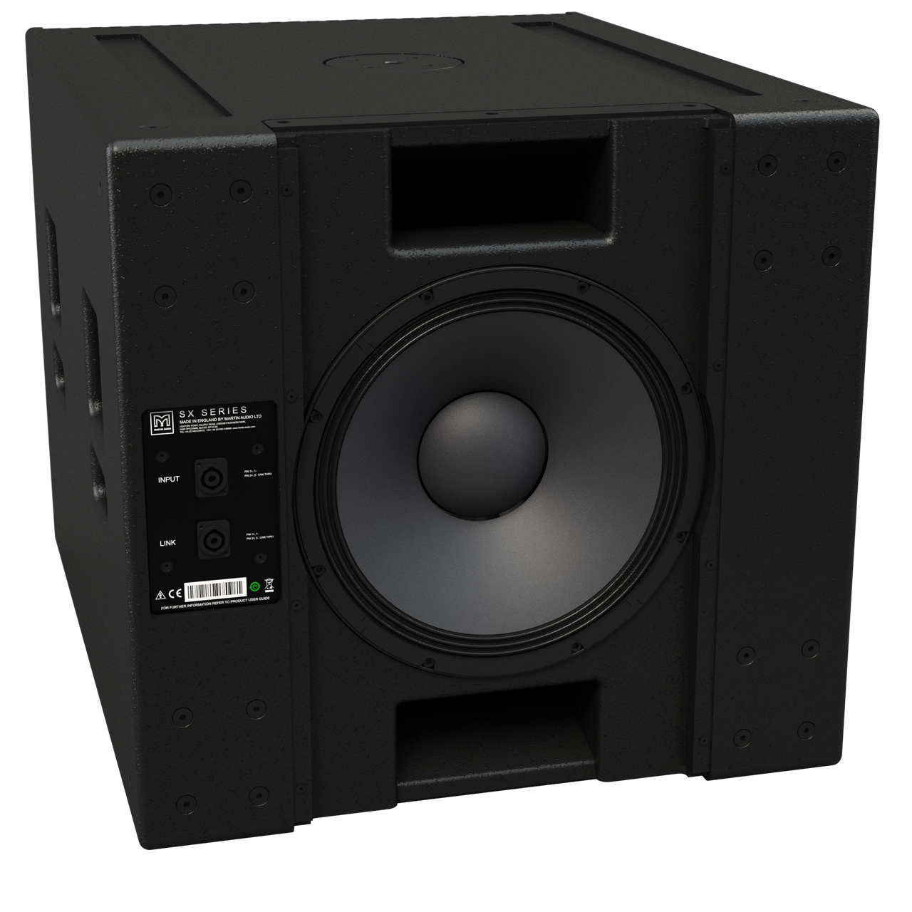MARTIN Audio SXC118 er en kompakt, højtydende kardioid subwoofer designet til touring-lyd og installationer. Den har en 15″ (460 mm) fremadvendt driver og en 14″ (356 mm) bagudvendt driver, der hver især drives uafhængigt af separate forstærkerkanaler og DSP.