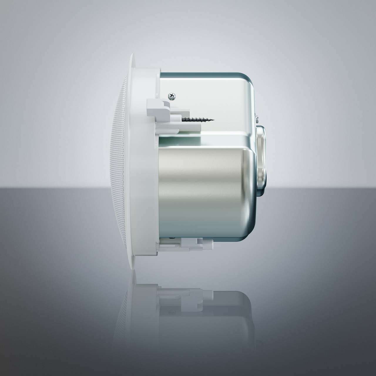En lav stålbagside muliggør installation i lofter med minimal hulrumsdybde. Et integreret fastgørelsessystem er inkluderet for at opnå en enkel og ren installation. Up 4S har en stålbagside, perforeret stålgitter og Lakkeret i neutral hvid.