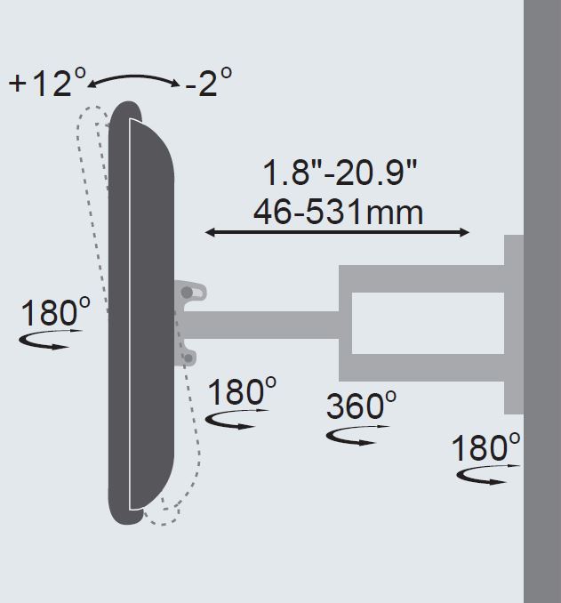 Vivolink vægbeslag med svingarm for 23″ – 55″. Passer til WESA 400×400 og op til 35kg.. Husk at tjekke væggens bære evne, da udtrækket belaster mere.