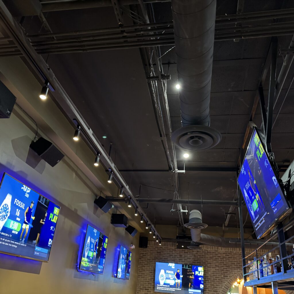 Baren er hjertet af spillestedet. I denne zone leverede elleve Cuboid 8-højttalere med lavfrekvent understøttelse leveret af fire Sub 10’ere en fyldig dækning, mens yderligere to Cuboid 15’ere tilføjer punch til DJ-sæt. “Ejeren ville have det højt …. rigtig højt,” sagde Miranda fra integratoren. “Så vi skruede op for det med Cuboid 8’ere og forstærkede det med Sub 10’ere. Når DJ’en starter, kommer hele stedet til live.”