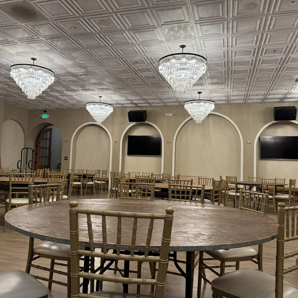 I eventsalen giver fjorten UP6-lofthøjttalere og fire Sub 10’ere en jævn dækning til daglig brug. Til større arrangementer leverer et separat system med to Cuboid 15’ere og to Sub 15‘ere den klarhed og energi, der kræves af liveunderholdning. Alt i alt et meget fleksibelt system.